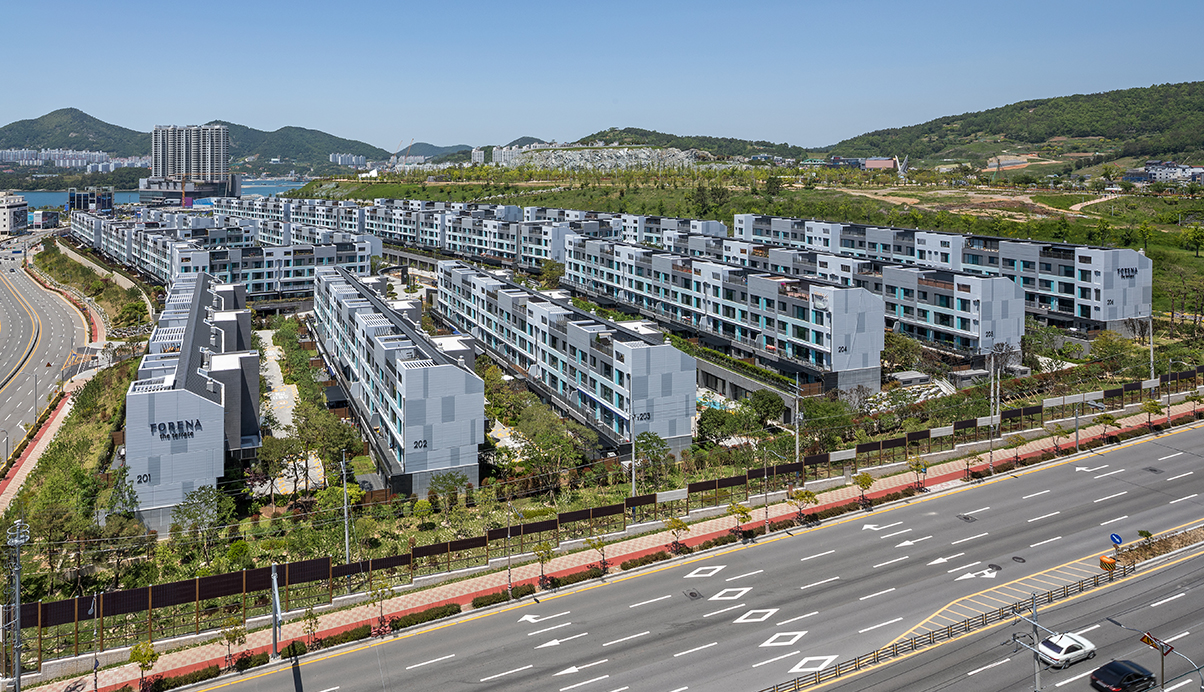 본 프로젝트는 택지개발지구에 건축하는 4층 이하의 연립형 공동주택 사업으로, 전면에는 바다가 인접해 위치하고, 후면에는 전체 택지의 중심인 공원이 자리잡고 있다.