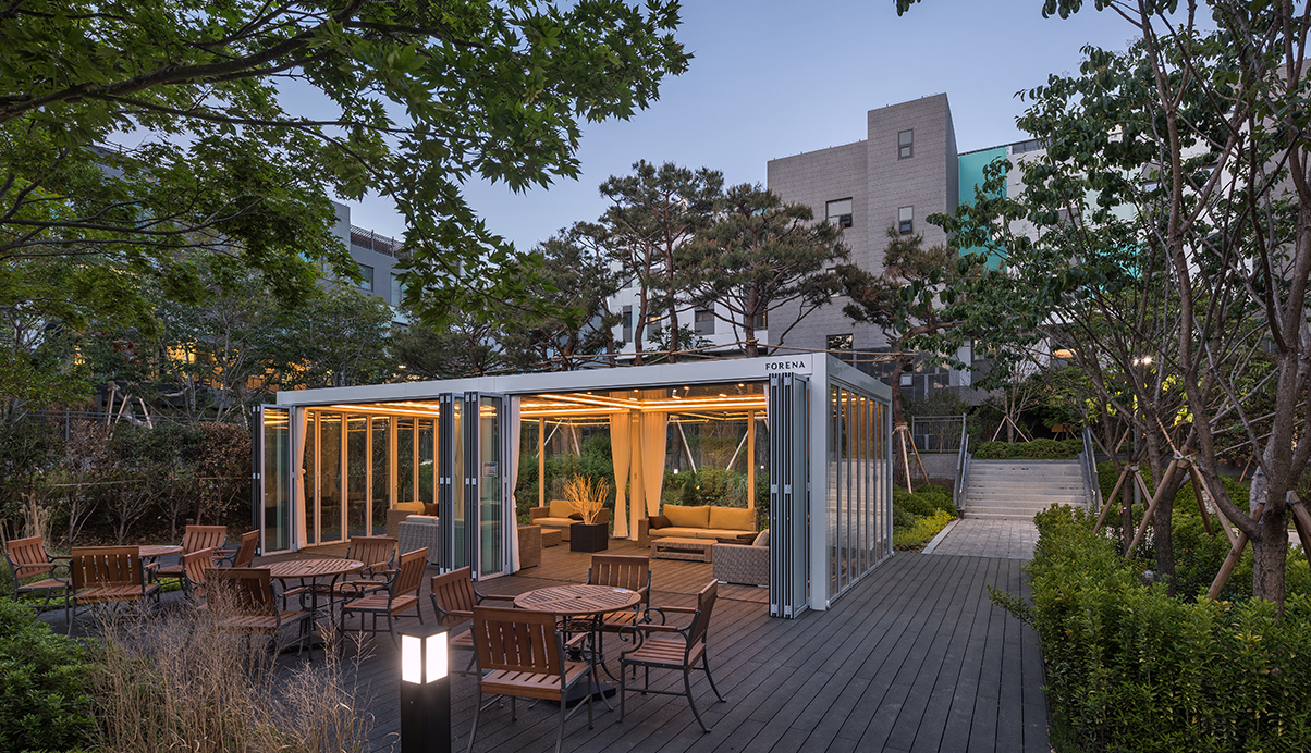 경사진 원 지형을 고려한 단지 레벨 계획으로 단차가 생기는 하부공간을 부대복리시설, 지하주차장, 근린생활시설 등으로 활용하였으며, 상부공간은 각각의 동들을 이어주는 클러스터 마당과 그 마당들을 이어주는 커뮤니티 가로를 형성하여 차량이 접근하지 않는 보행자 중심의 공간으로 계획하였다. 각 세대는 전면 4베이, 맞통풍 세대로 계획하였으며, 1,2층은 전면테라스, 3층은 후면테라스, 4층은 다락 및 루프 테라스를 제공하여 세대 내외부에 삶의 여유를 더했다.