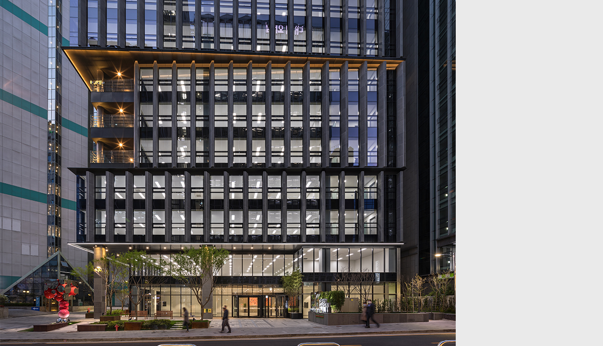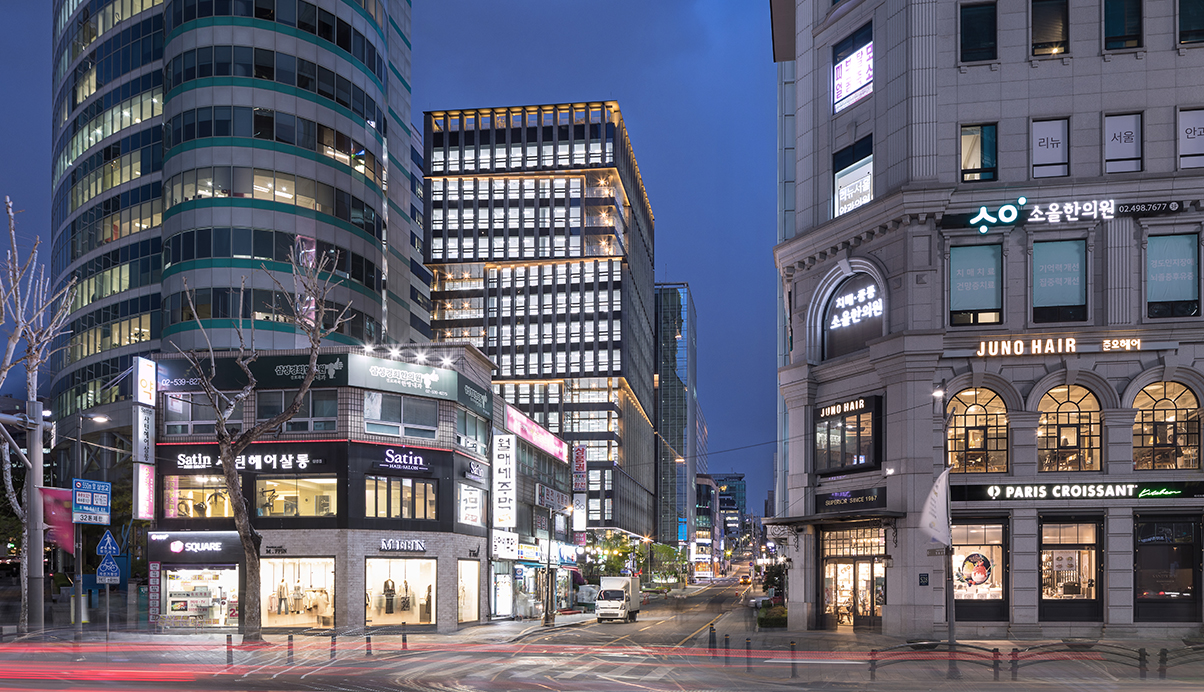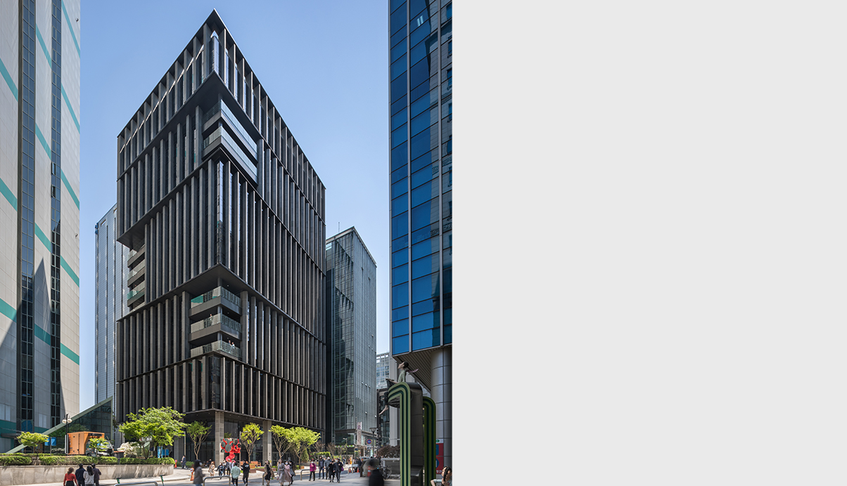 본 프로젝트는 기존건물을 철거하고 재건축하는 사업으로서, 부지는 고층 오피스들이 즐비한 서울 테헤란로에서 한 켜 뒤인 이면블록에 자리하고 있다. 따라서 건물은 이전의 건물보다 높은 임대효율을 고려한 사업성과 부지의 건물을 잘 인지하면서도, 건물 내부에서도 비교적 일조와 최적의 환경을 만들어주는 것이 본 프로젝트의 과업이었다.