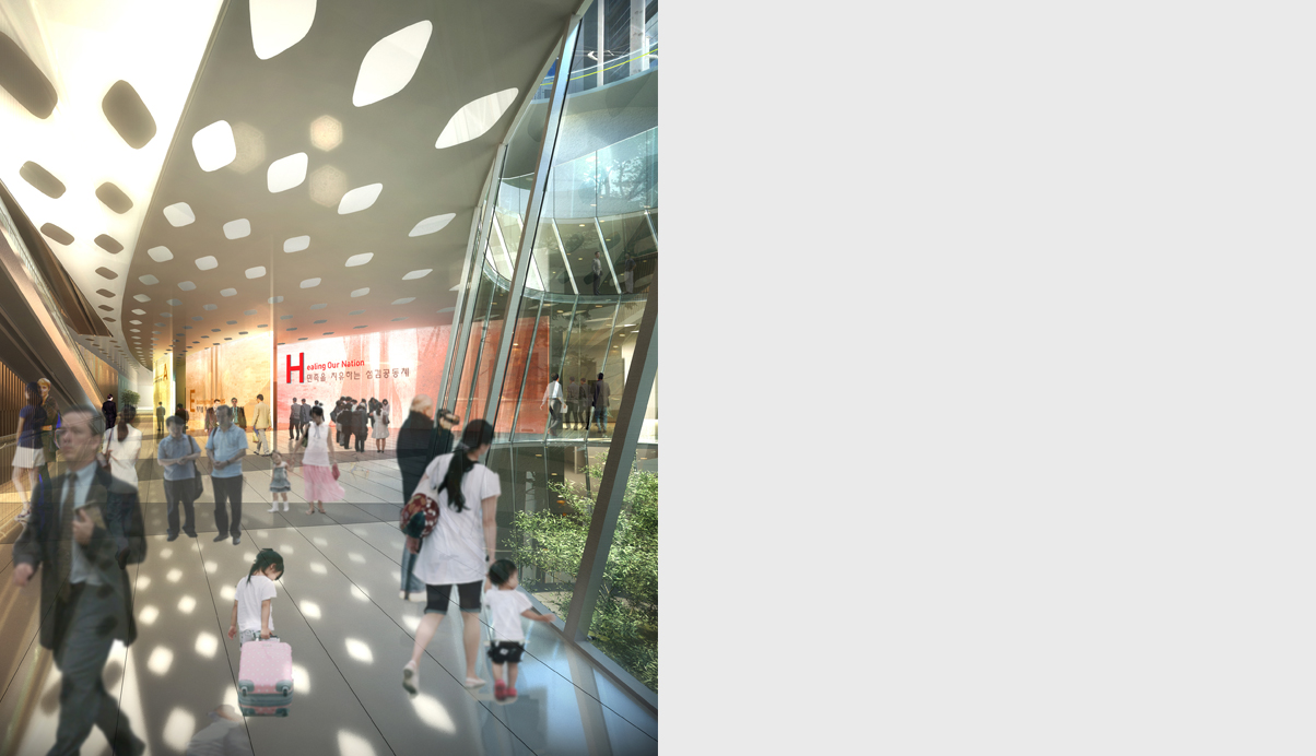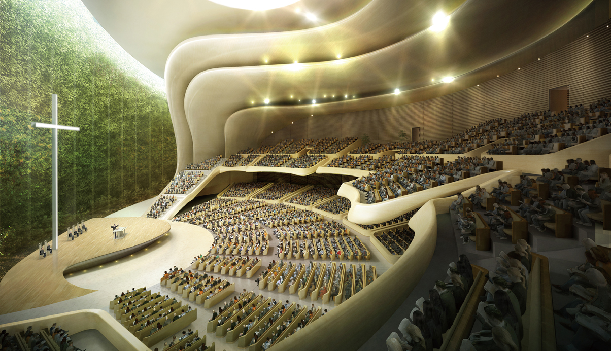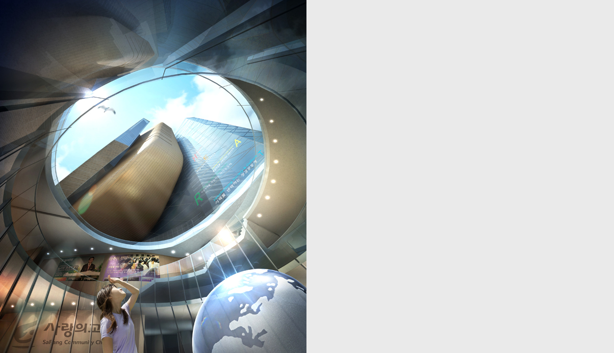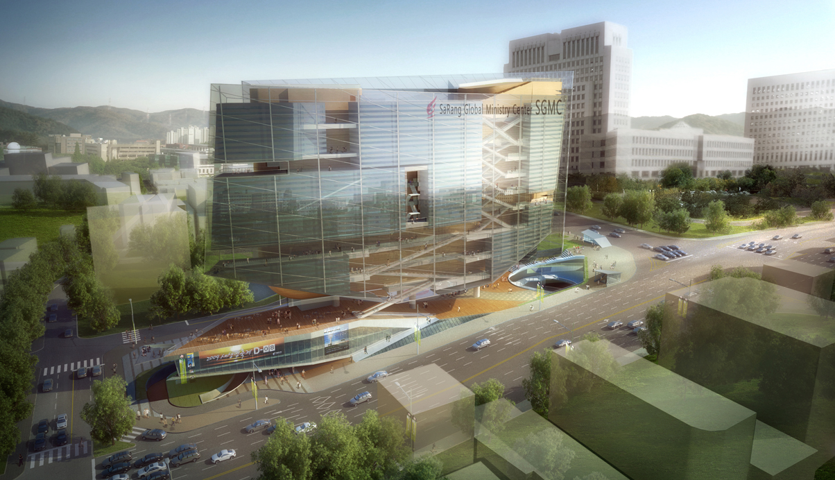 한국 문화및 정치와 경제를 대표하는 두길이 십자가의 형상으로 교차하는 중심에 “기도하는 문”으로서 Spirit space를 도시의 Landmark가 되게하고, 다음세대와 지역사회를 위한 커뮤니티 센터로서 사람과 사람, 길과길, 공원과 대지를 연결시켜 소통과 개방이 어우러지도록 계획하였다. 노아의 방주: 세계선교를 향해 앞으로 나아가는 사랑의 교회를 표현한 배치은혜의손/기도하는 손: 기도하는 손으로서 민족과 세계를 아우르는 영적공간으로서 형상화오병이어 물고기: 오병이어의 기적으로 북한주민을 구원하고자 하는 소망- 사랑의 교회 성도들을 상징