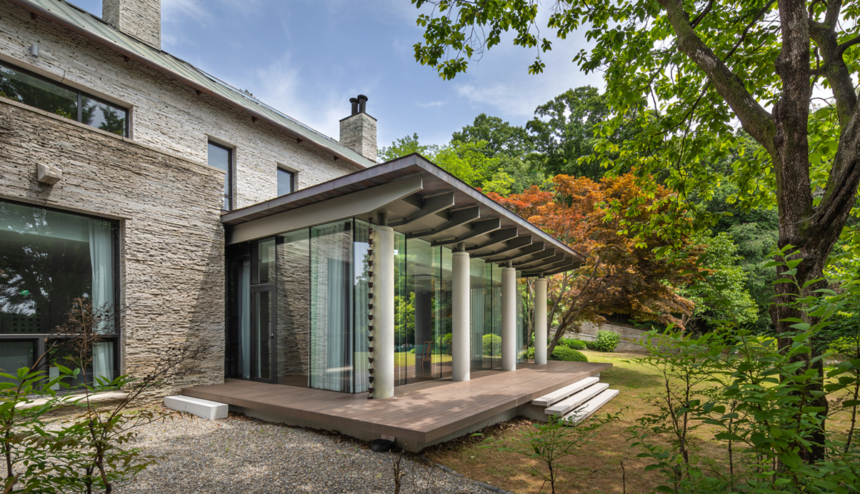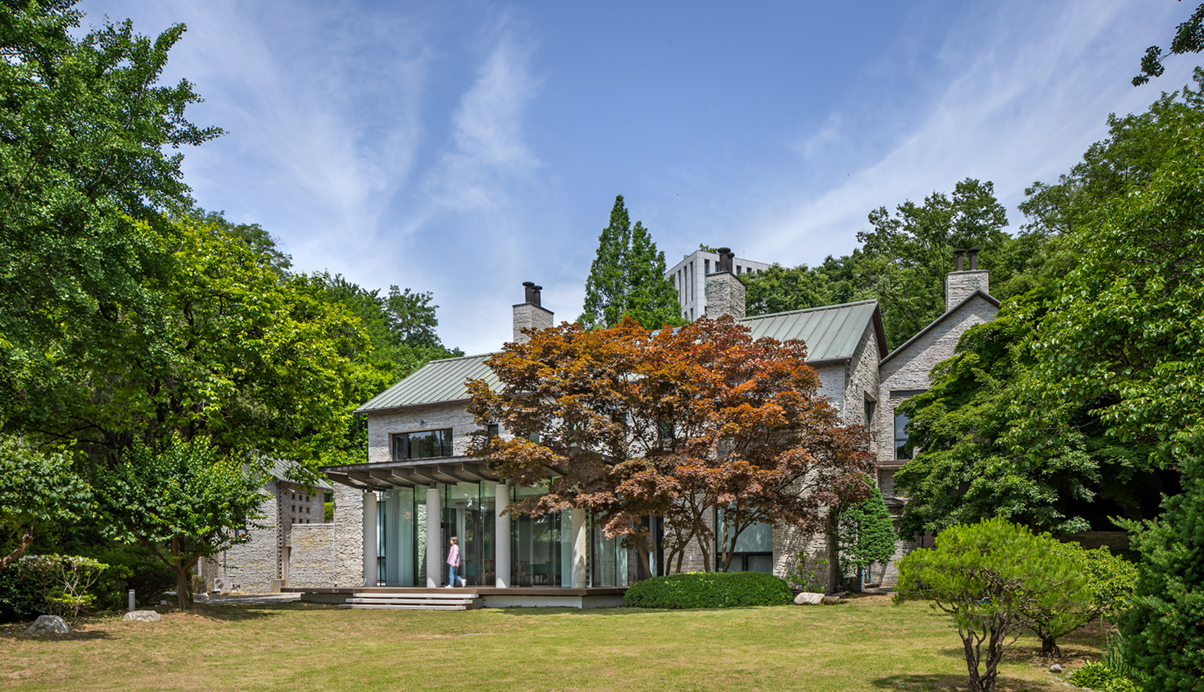 이화여자대학교 캠퍼스 북동쪽 북아현동 산기슭에 자리잡은 이화학당 법인행정동은 지상 2층의 건물로 30년 전에 지어진 석조건물이다. 건축주는 증축 및 리모델링으로 새롭게 단장하기를 원했으며, 지상 1층 대연회실 확장과 외벽마감을 제외한 내·외부 전체로 각 실의 박공형태를 유지하며 설비 및 조명, 일부 가구디자인 계획이 공사범위에 포함되었다. 대연회실은 내부 및 외부데크를 확장하여 다양한 회의와 연회가 가능하도록 하였고, 기존 천장의 원형 오픈부와 샹들리에 틀을 유지하며 천장 디자인을 계획하였다. 응접실 및 교수연구실로 사용하였던 별채동은 프라이빗한 이사회 회의실로 용도를 변경하고 전면과 후면의 창호를 통해 중정과 정원의 풍경을 연계하였다.